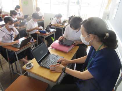 「はい、みんなの結果が送られてきましたぁ。100点が多いねぇ!!」