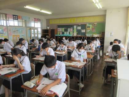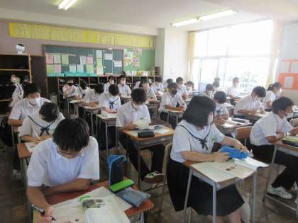 英語の授業です。 ゴリラの記事を読んで、具体的な対応策を学習しました。