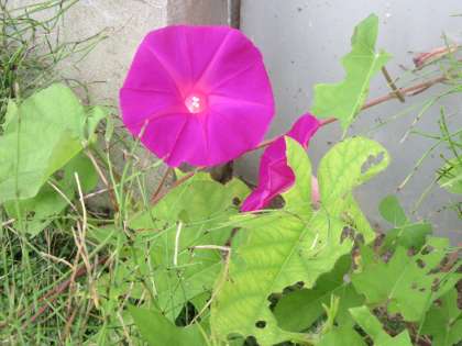 こんなところに、アサガオが・・・!! 美しい色です。