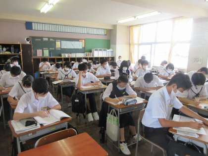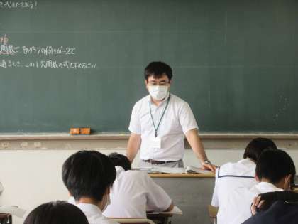 数学の授業です。 1次関数の式を求める方法を学習しました。
