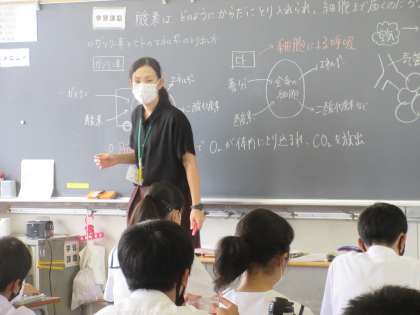 理科の授業です。 酸素はどのように体に取り入れられ、細胞まで届くのかを学習しました。