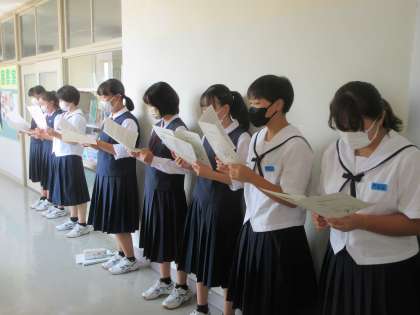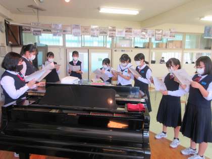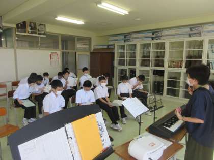 音楽の授業です。 合唱曲「あさがお」をパート練習しました。