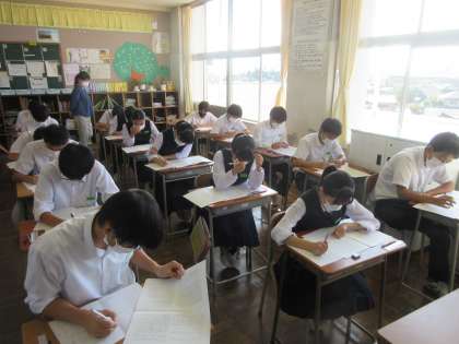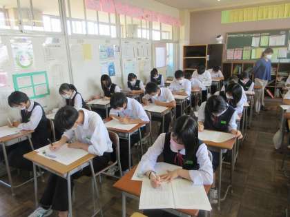 3年生は、1・2限に、第3回確認テストを行いました。 今日は、国語と英語です。