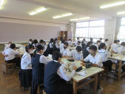 技術・家庭科の授業です。 アイロンがけのポイントを学習しました。