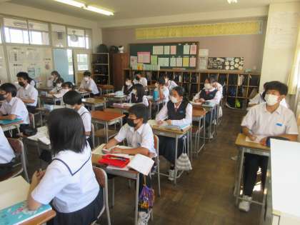 数学の授業です。 小数・分数を含む方程式を学習しました。