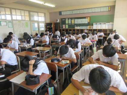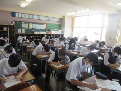 国語の授業です。 漢字テストです。漢字は地道に覚えましょう!!