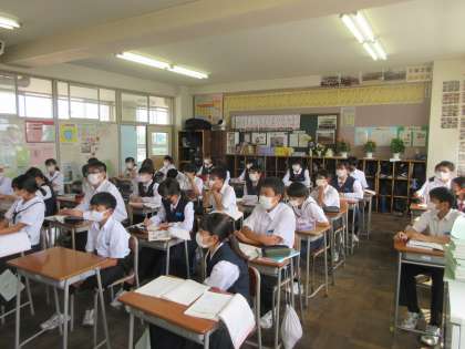 数学の授業です。 小数・分数を含む方程式を学習しました。
