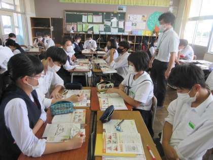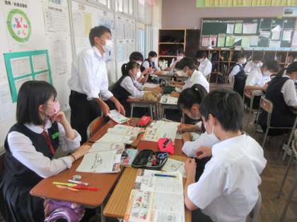 社会の授業です。 三つの権力はどのように影響しているのかを学習しました。