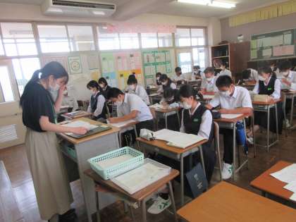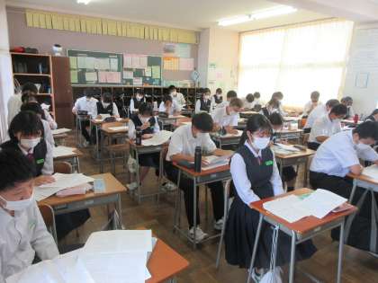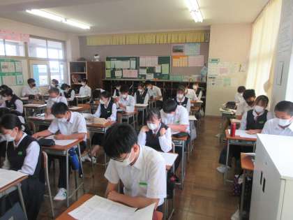 国語の授業です。 昨日の確認テストの解説を行いました。