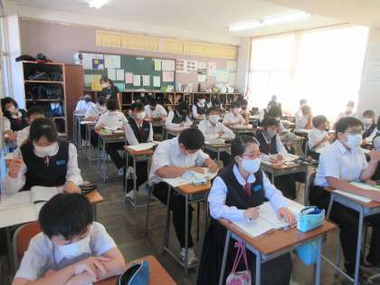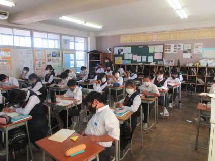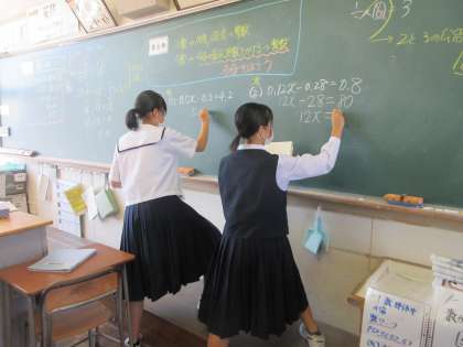 数学の授業です。 小数・分数を含む方程式を学習しました。