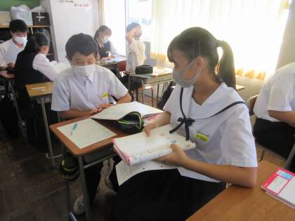 2−3(その2) 公開日 2021/09/21 更新日 2021/09/21 第2学年 「What do you have do this week?」 「I have to practice the piano on Monday.」