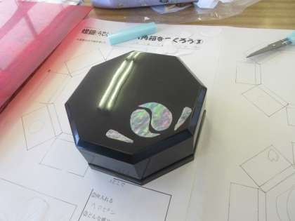 美術の授業です。 螺鈿細工で八角箱をつくります。
