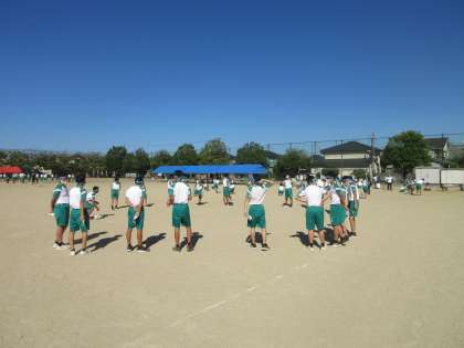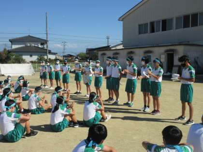 団ごとに分かれて、応援合戦の練習です。 鋭鷲団の様子です。