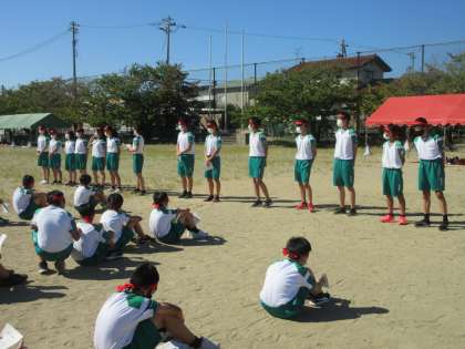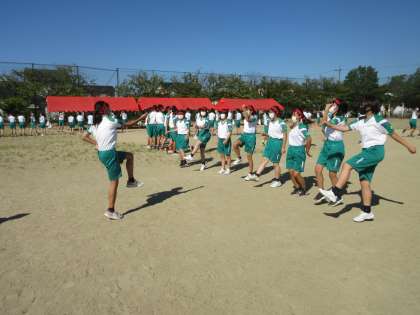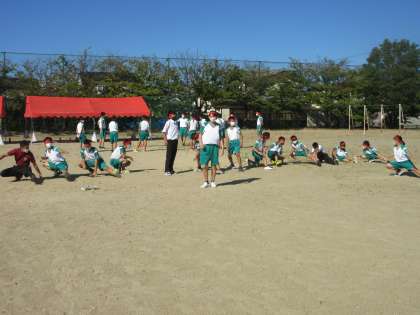 応援リーダーが、学年に分かれて振り付け等を指導します。