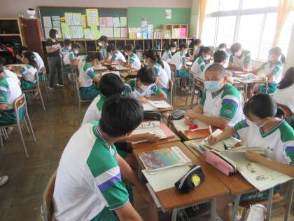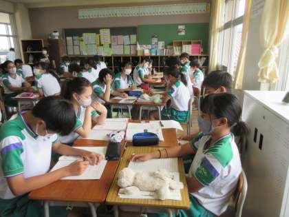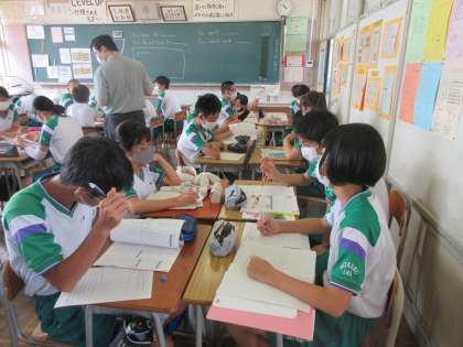 英語の授業です。 ALTのレイ先生と一緒に学習しました。