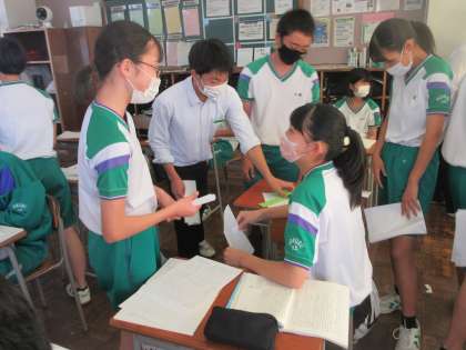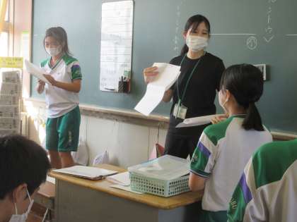 国語の授業です。 先日の確認テストの解説です。 「どうだった?」「今回はばっちり!!」