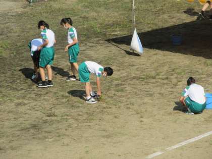 保健体育の授業です。 場所が空くまで、草むしり等を行いました。