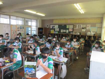 英語の授業です。 好きなことや楽しんでいること、得意なことを伝えます。 「You can do it!」やればできる!!