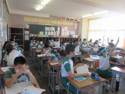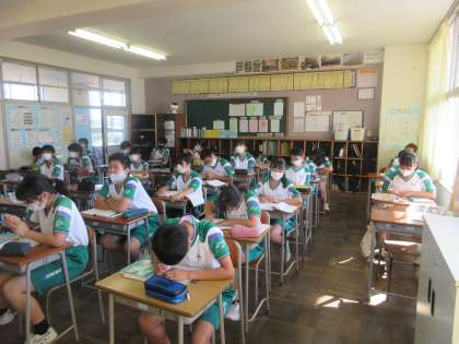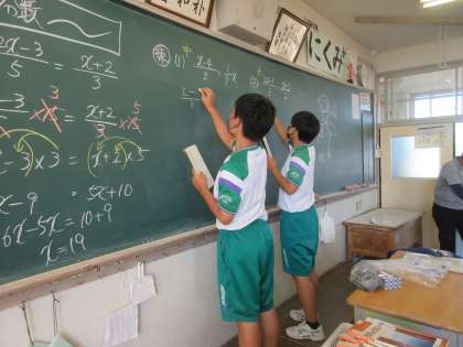 数学の授業です。 分数や小数を含む方程式を学習しました。