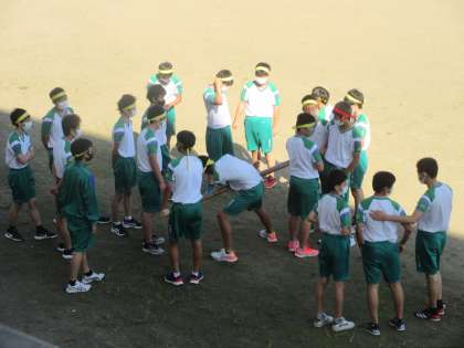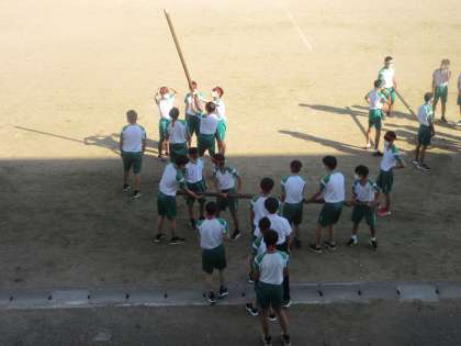 3年男子の学年種目は、「棒引き」です。 グラウンドがあくまで、作戦タイム&練習です。