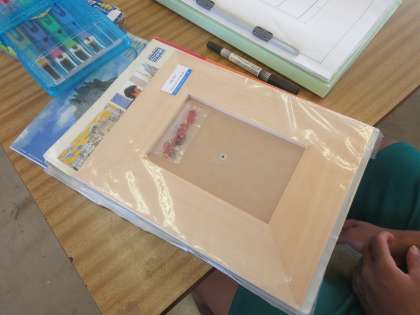 美術の授業です。 フォトフレームをつくります。