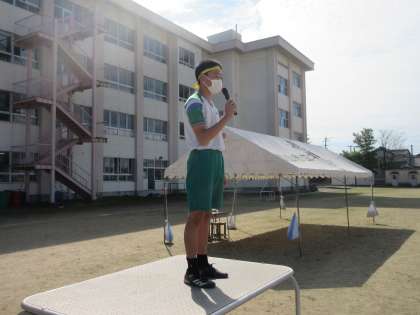 団活動の前に、体育大会実行委員企画の「今日の、それ、いいね」に選出された生徒が、今日の練習の目標を述べます。