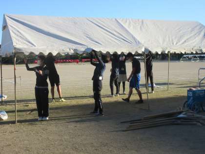 快晴の下、体育大会を予定どおり開催しました。 教職員も、朝早くから準備を進めました。