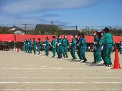 3年生女子の学年種目「タイヤ引き」です。 女の戦いが始まります・・・。