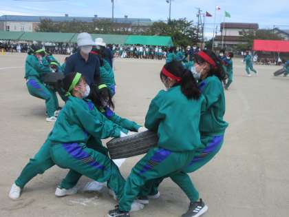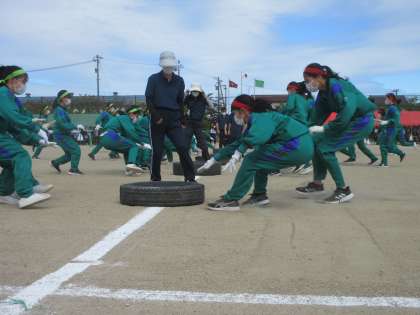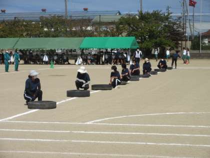 各タイヤに審判の教員が付きます。 さあ、熱い戦いがスタートしました。