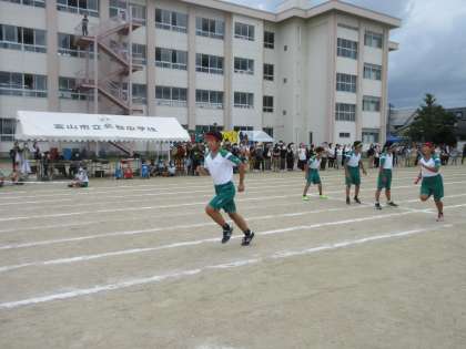 最終種目「総合リレー」です。 各団の精鋭が集います。1年生の女子からスタートです。