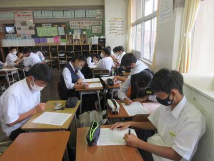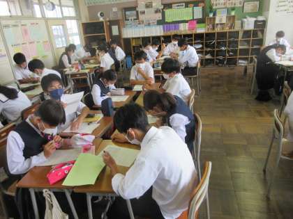 学活の時間です。 合唱コンクールの目標等を話し合いました。