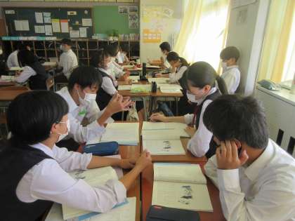 国語の授業です。 「故郷」の学習の佳境に入りました。