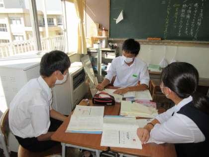 国語の授業です。 魯迅作「故郷」を題材に、主人公の思いについて話し合いました。