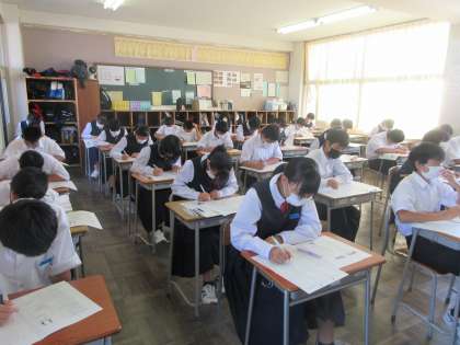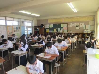 中間評価、二日目です。 1年生は、社会、数学のテストです。