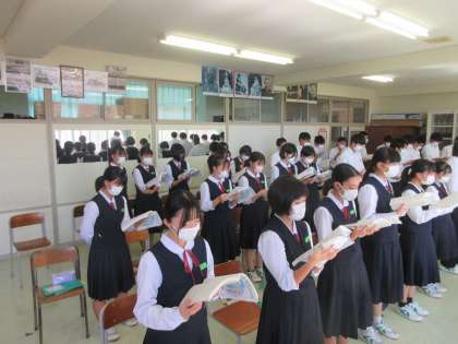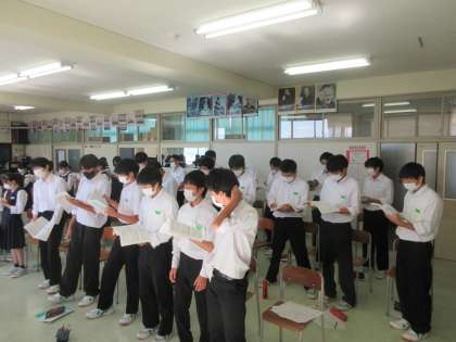 音楽の授業です。 合唱曲「輝くために」を練習しました。