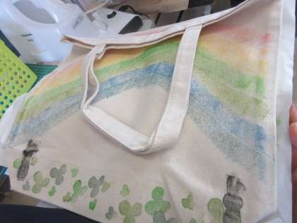 1年生担当者も気になって見に来ました。 かわいいトートバッグが仕上がりました。