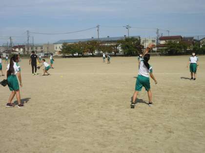 保健体育の授業です。 ソフトボールです。まずは、キャッチボール!!