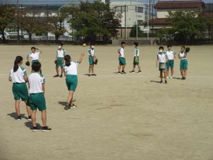 グループでスピード感をもって、キャッチボールです。