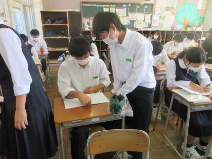 技術・家庭科の授業です。 幼児がよろこぶ絵本をつくります。
