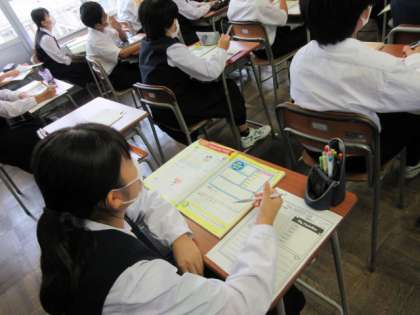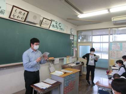 英語の授業です。 今日は、ALTの先生も一緒に勉強します。