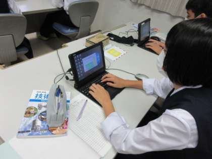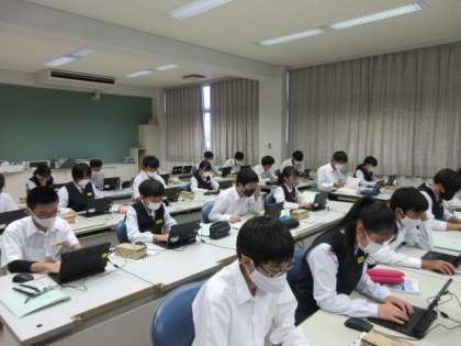 技術の授業です。 コンピューター室にて、タイピングの練習をしています。