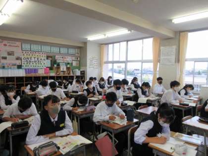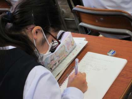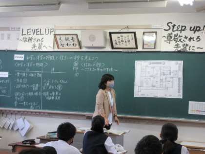 家庭科の授業です。 漫画「サザエさん」に登場する磯野家の間取りから、住まいの安全について考えています。