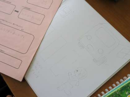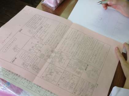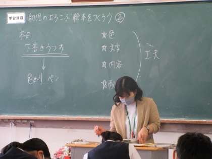 技術・家庭科の授業です。 幼児向けに絵本をつくっています。
