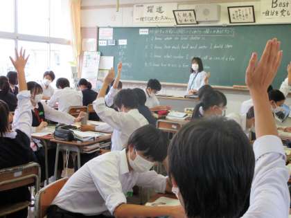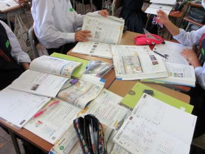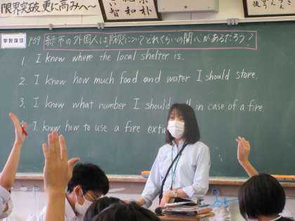 英語の授業です。 防災について書かれた英文を読み取りました。