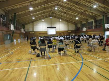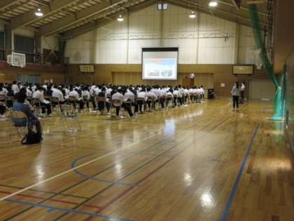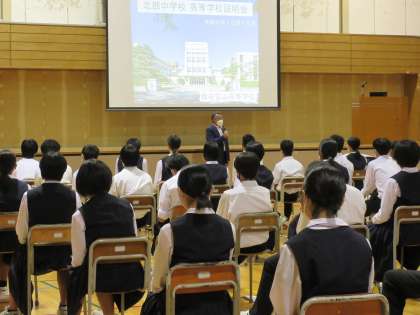 3学年 高等学校説明会 公開日 2021/10/12 更新日 2021/10/12 第3学年 5、6時間目に3年生とその保護者を対象に、高等学校の説明会を行いました。 6高等学校から先生方にお越しいただき、各校の学科やコースの特色、部活動の様子等、今、3年生が知りたい情報をスライドや動画で説明していただきました。