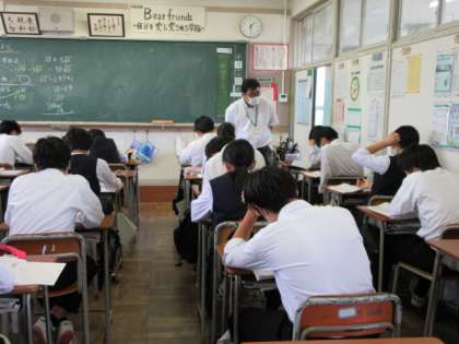 数学の授業です。 関数の利用の時間です。ブレーキ痕の長さから走行時の速さを推測しました。