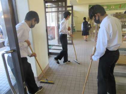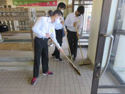 生徒玄関の掃除です。 きれいになります。ありがとう!!