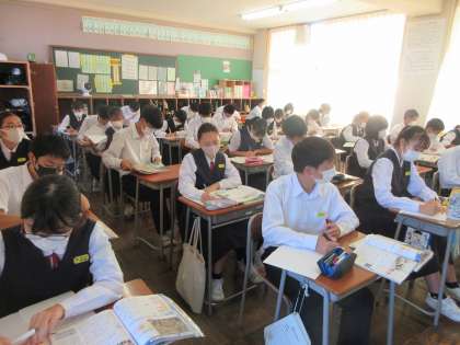 社会の授業です。 アメリカの独立の影響を学習しました。