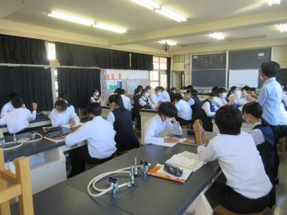 理科の授業です。 身近に見られる合力・分力を学習しました。