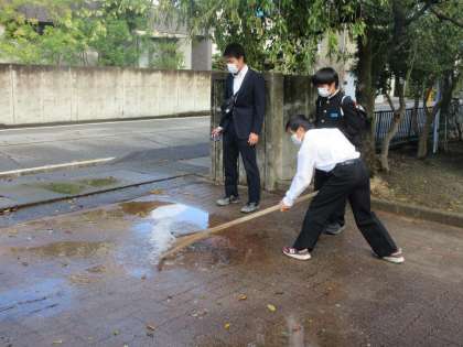 へこんだ部分にたまった水をかきだしてくれています。 ありがとう!!